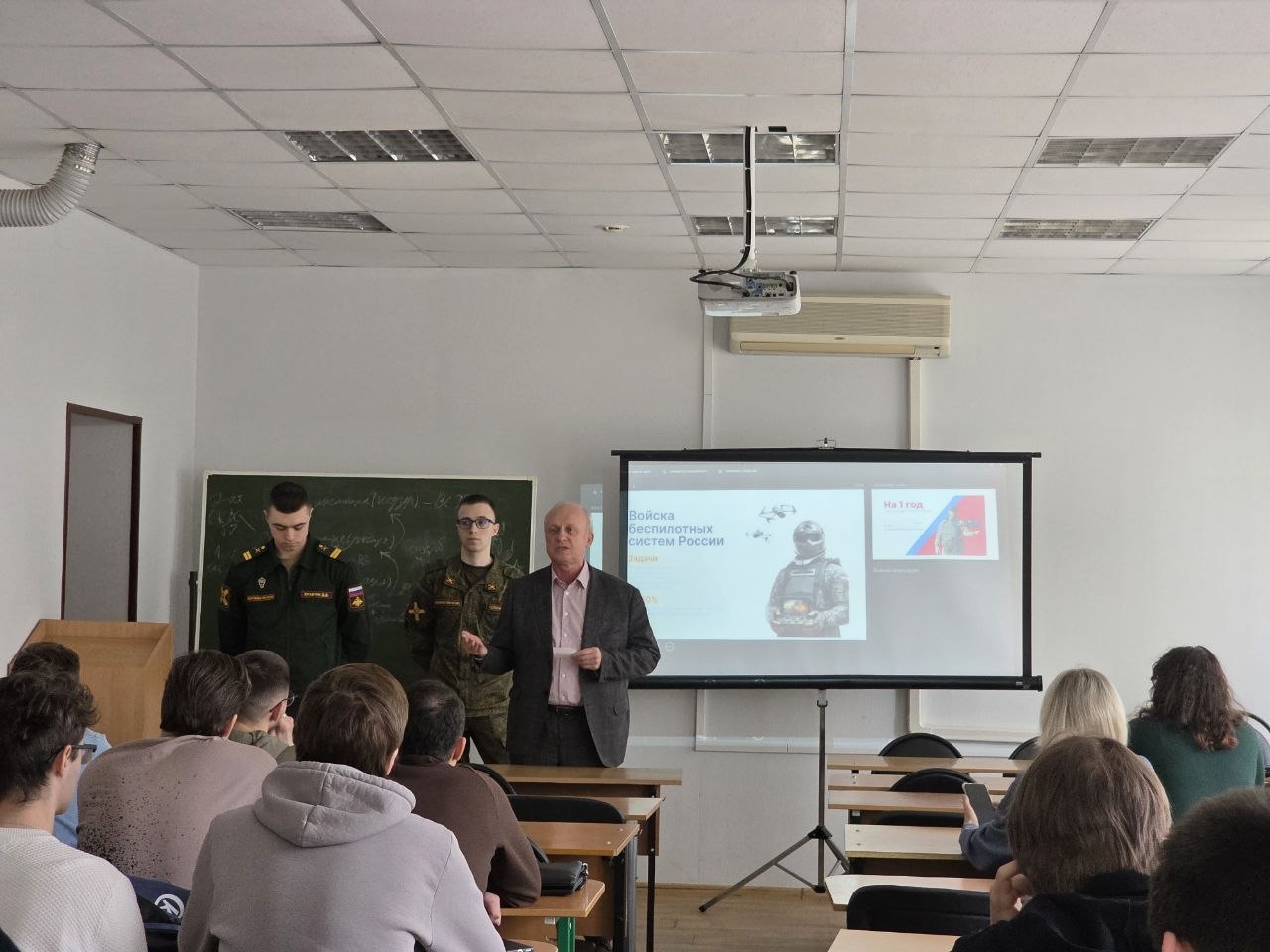 24 апреля в Королёвском филиале Международного юридического института состоялась важная информационная встреча, посвященная вопросам прохождения военной службы по контракту в Вооруженных Силах Российской Федерации – в войсках беспилотных систем. Перед студентами выступили профессиональные инструкторы, предоставив студентам полную и актуальную информацию о защите Отечества на профессиональной основе, об условиях и особенностях заключения специального контракта с Войсками беспилотных систем.